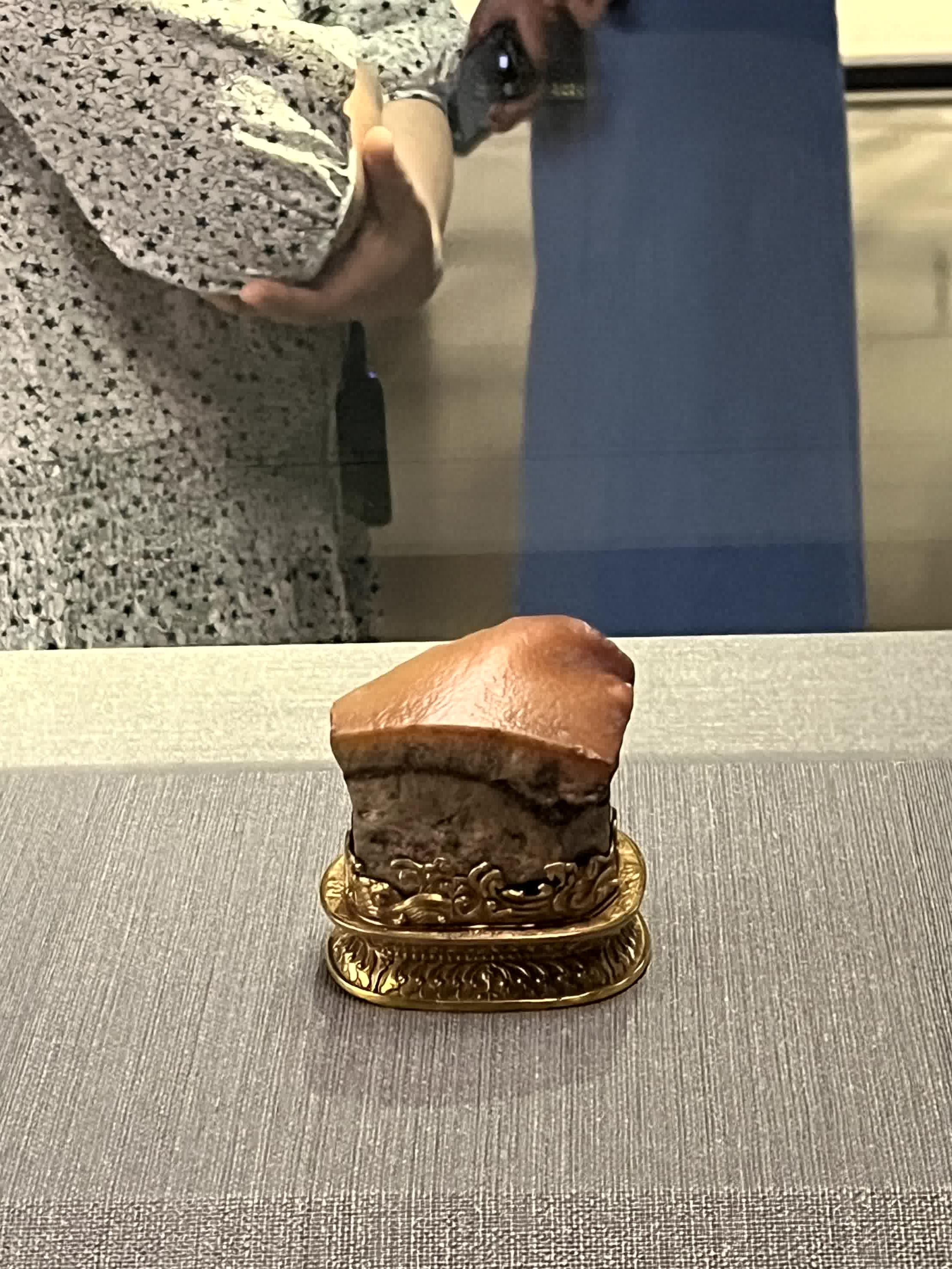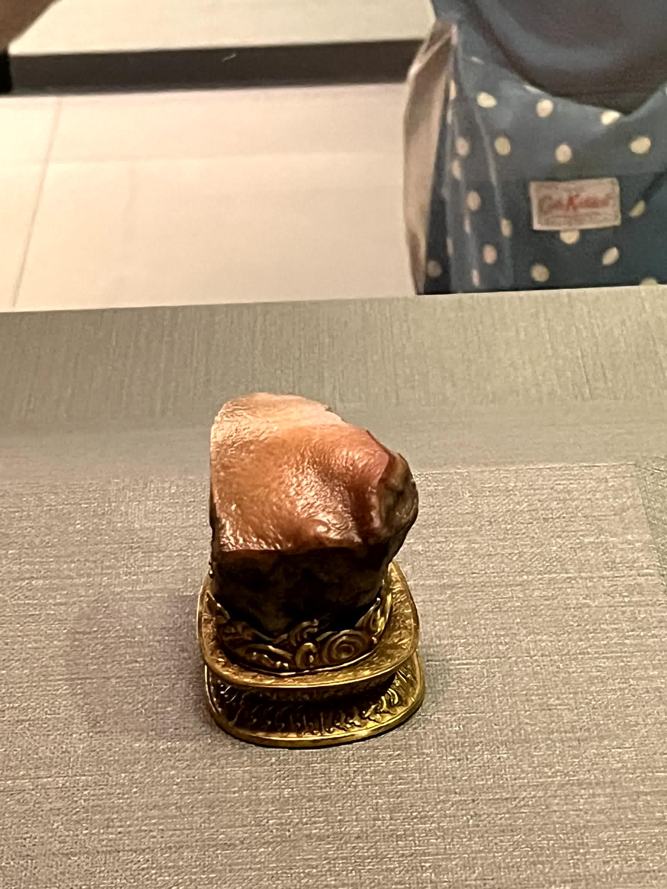 벽옥으로 된 보물인데, 우연히 강가에서 육형석을 발견하고는 그의 형상과 모습이 중국인들의 소울푸드인 동파육과 너무나 흡사하여 장인의 정교한 기술을 통해 천연재료 무늬를 그대로 살리며 지금의 육형석으로 자리잡게 됐습니다.