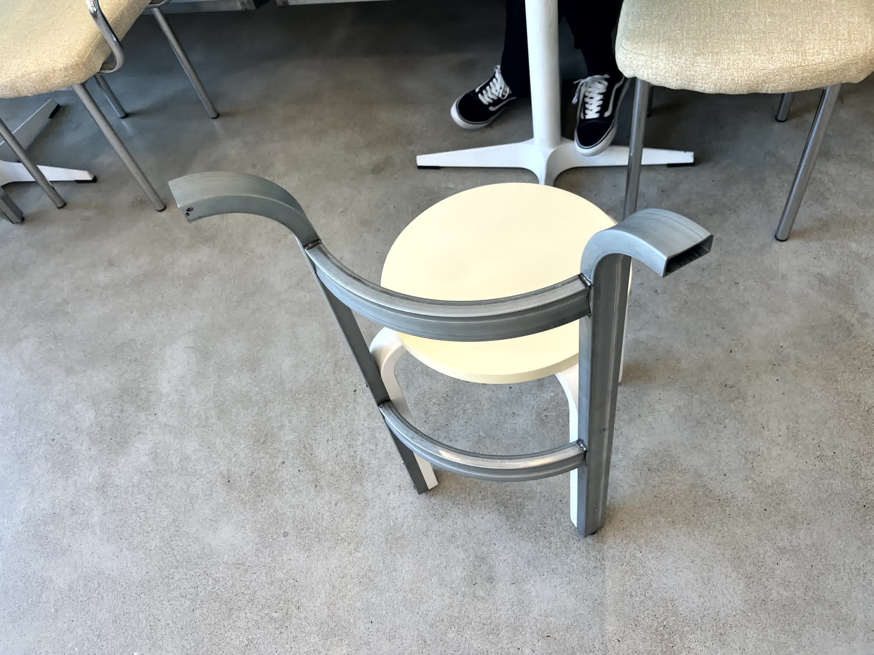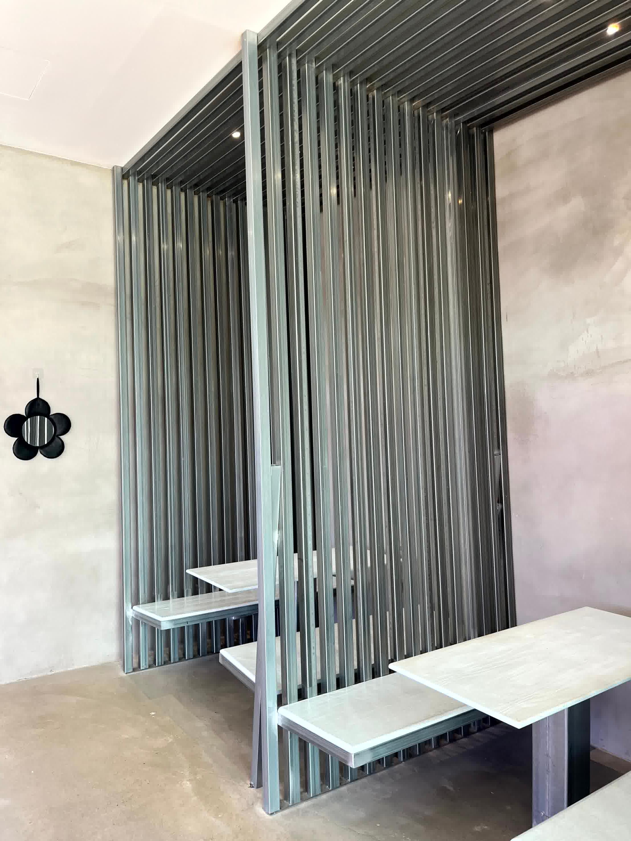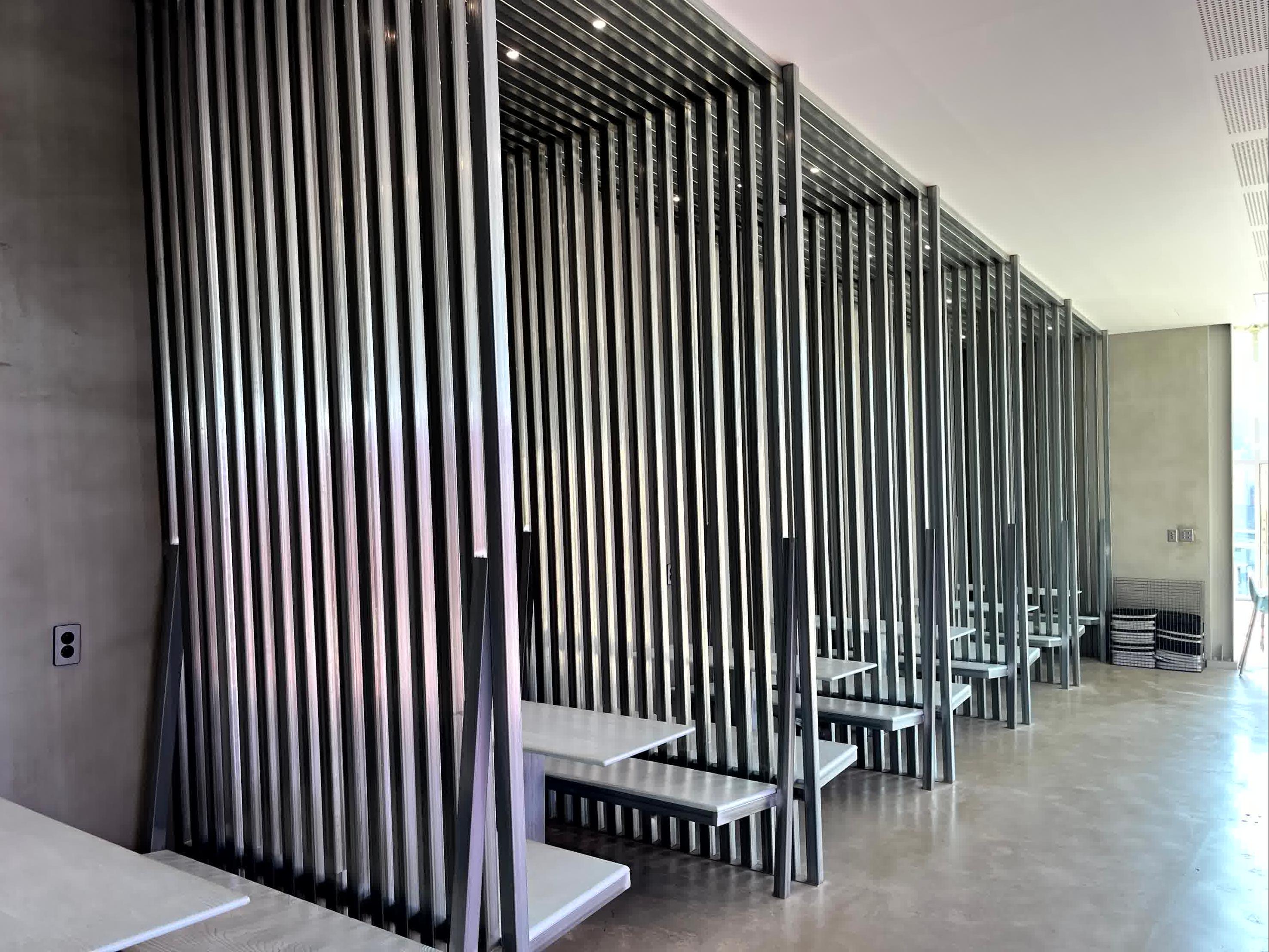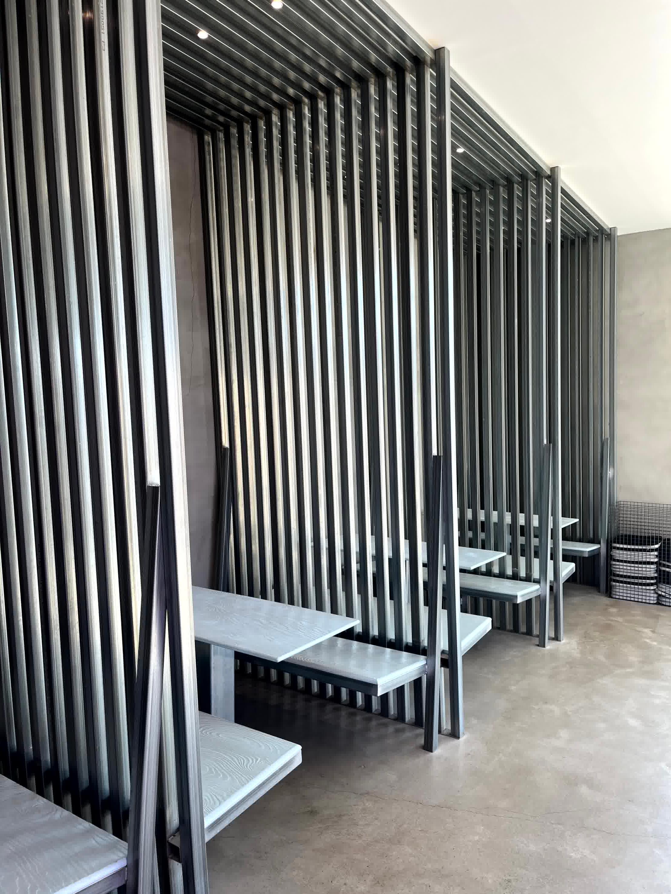 특히, 각 파이프로 의자를 만들고 의자 뒷편 공간을 각파이프로 만든점