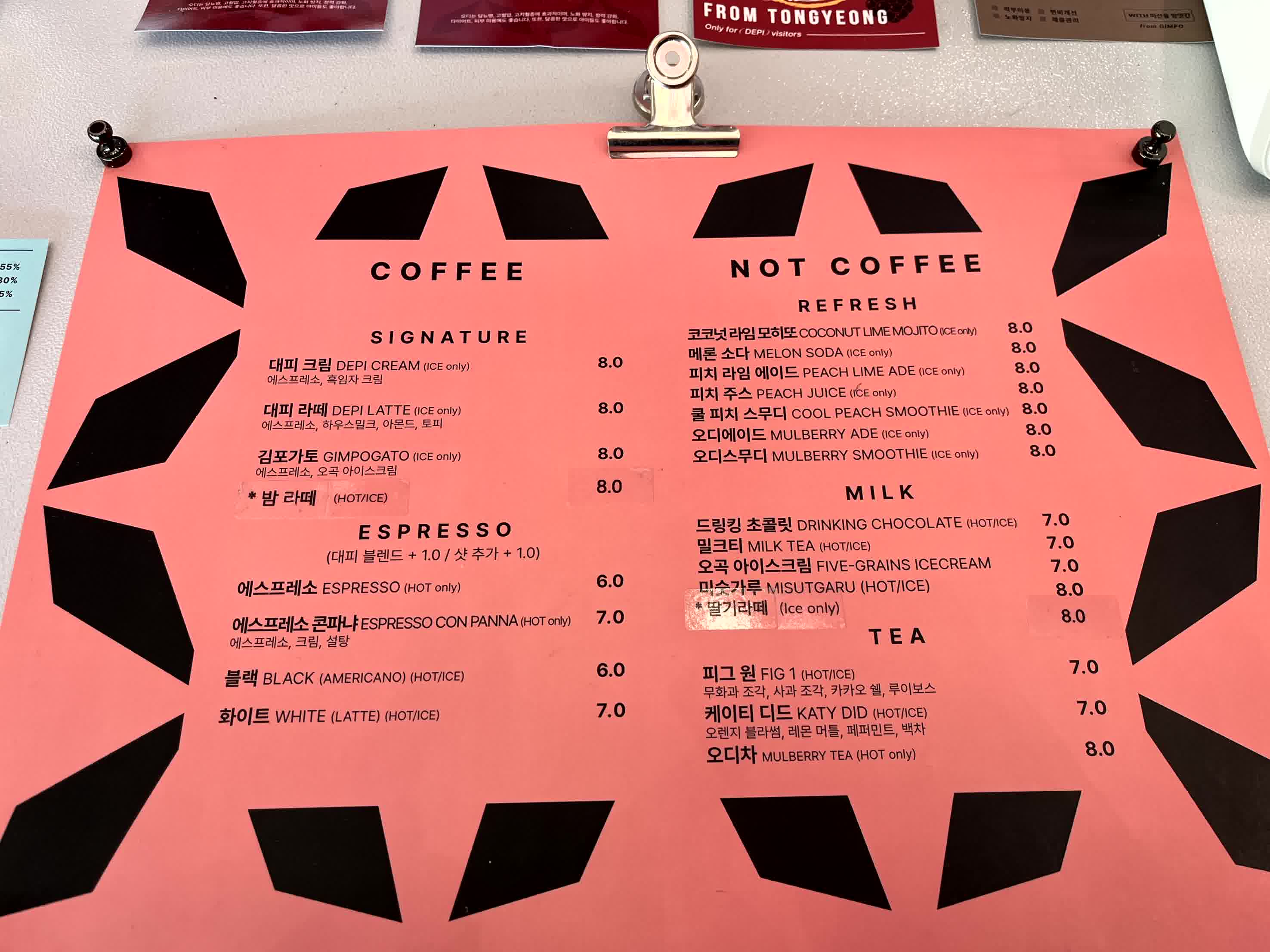 카페 대피 시그니처 메뉴