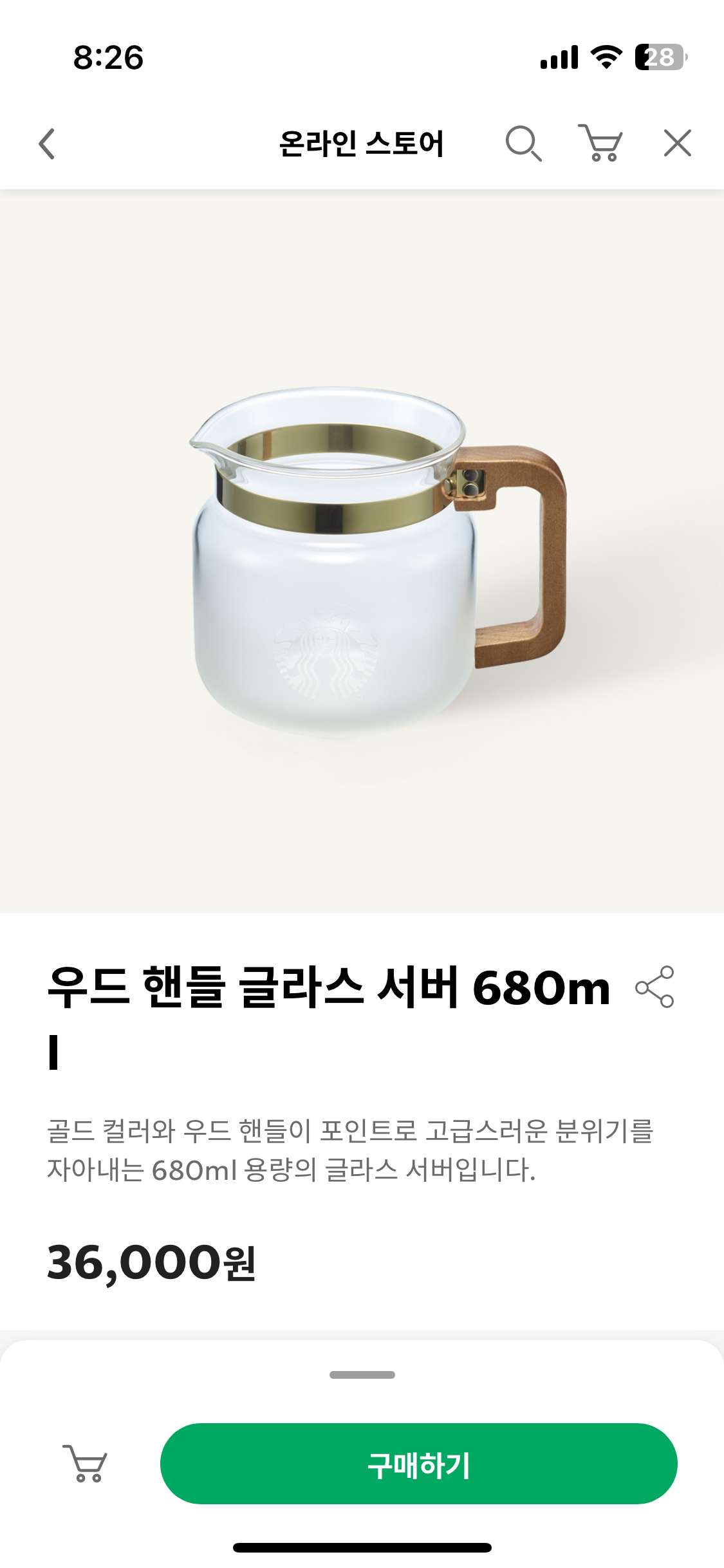 그러다 알아본 게 스타벅스 우드 핸들 글라스 서버 680ml 입니다.