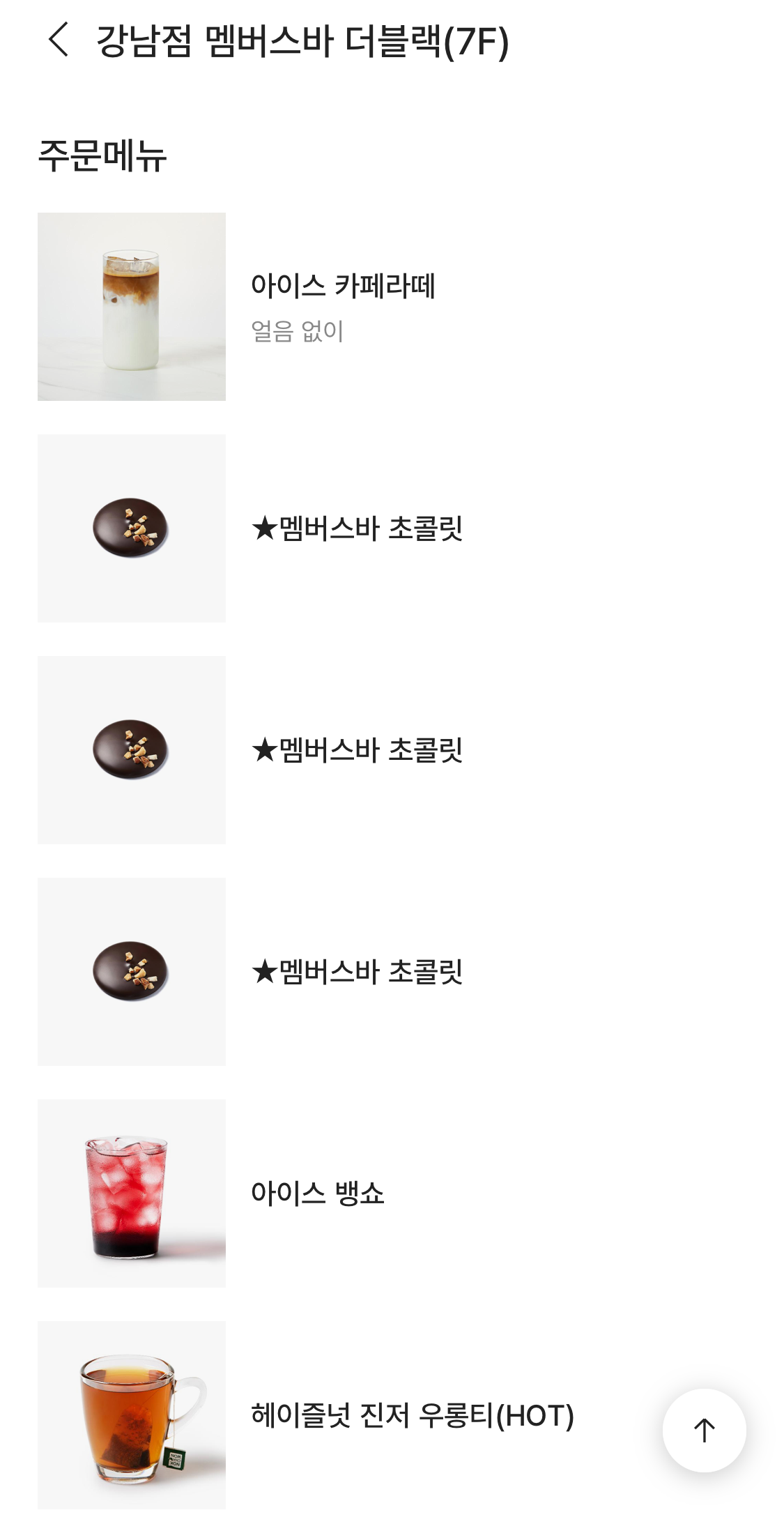 2. 멤버스바 더블랙 메뉴