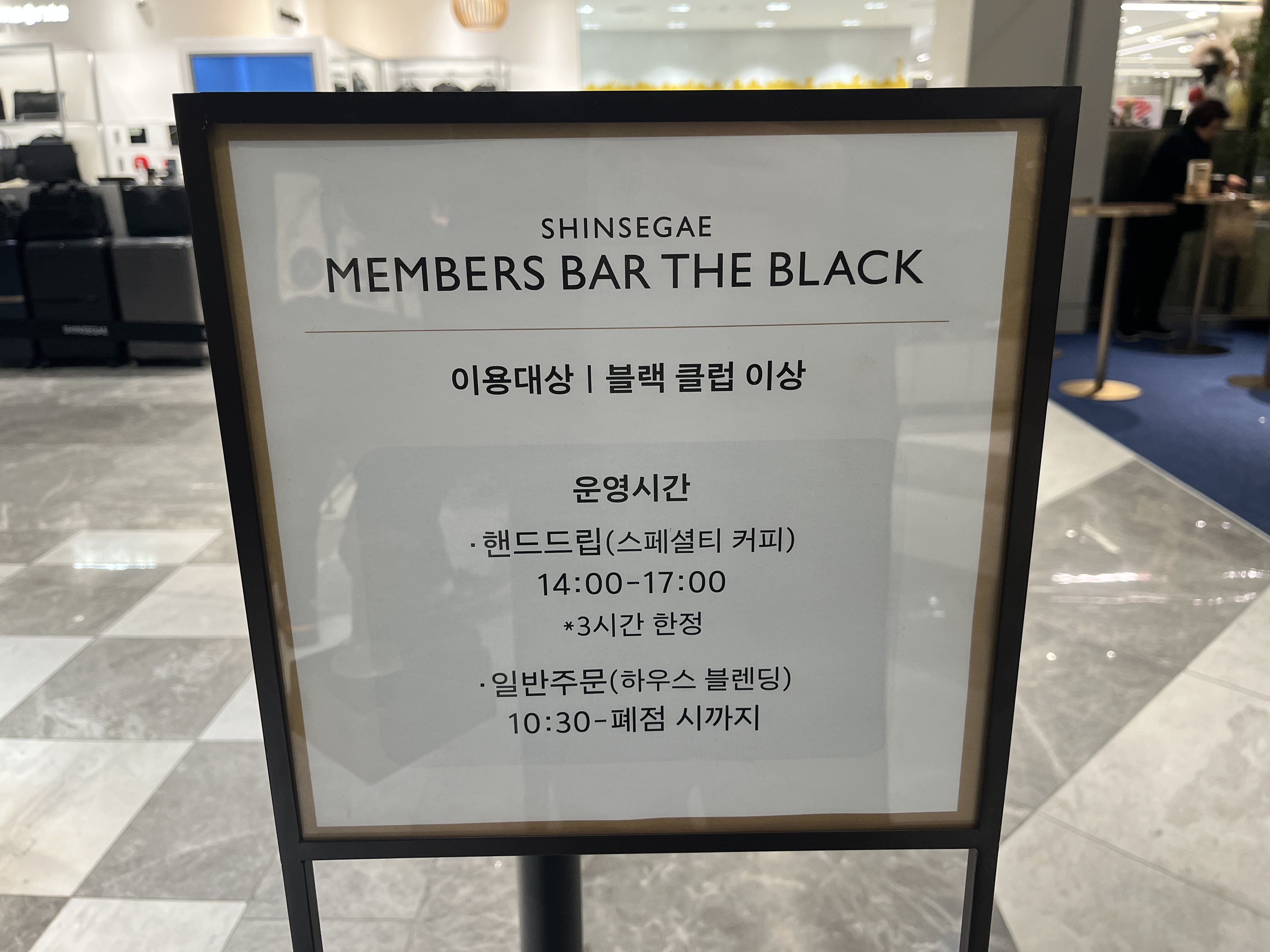 1. 신세계백화점 강남점 7층 멤버스바 더블랙
