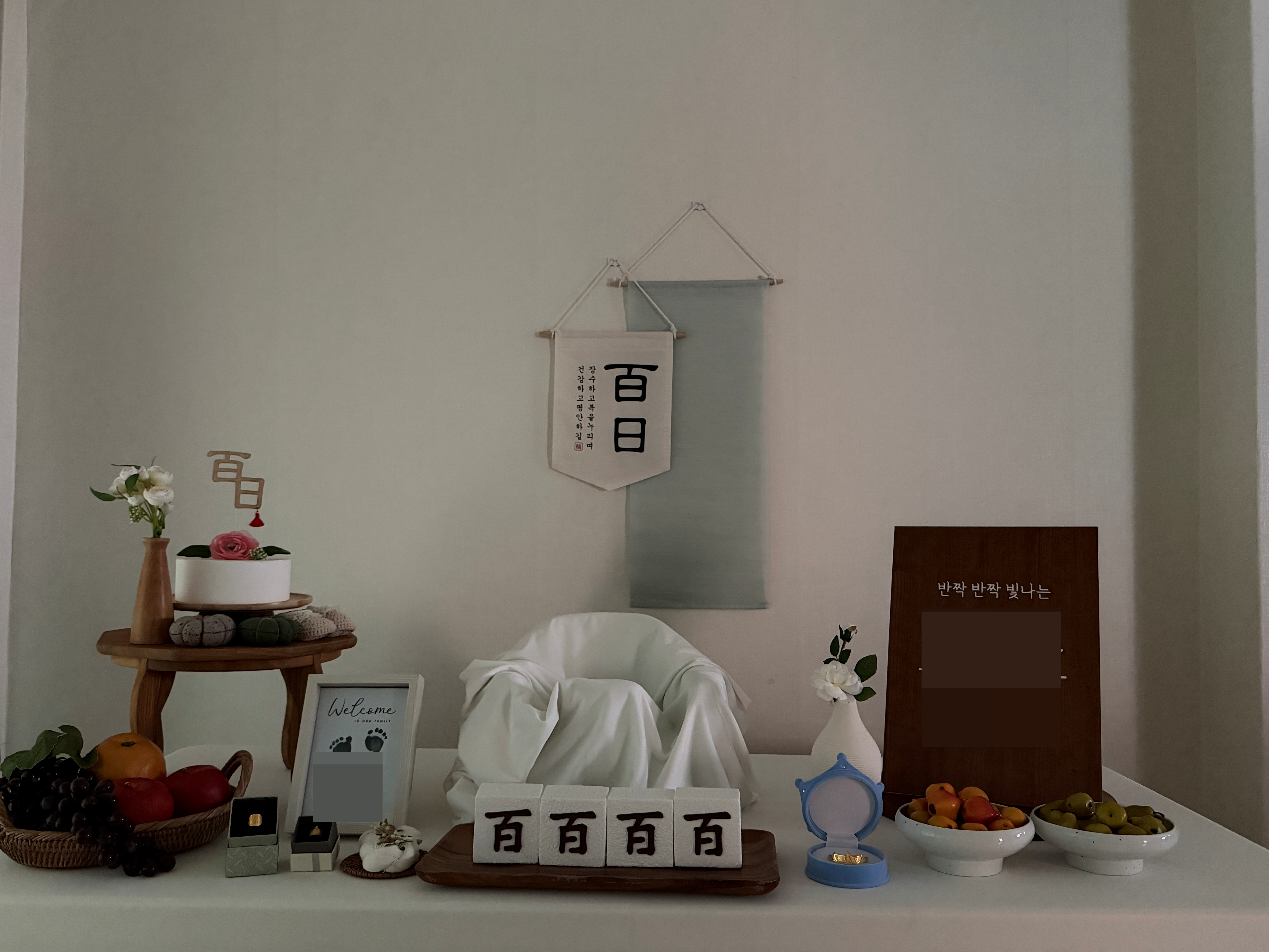 저희도 집에서 백일잔치를 준비했고, 양가 부모님들 모시고 소소하게 진행했습니다.