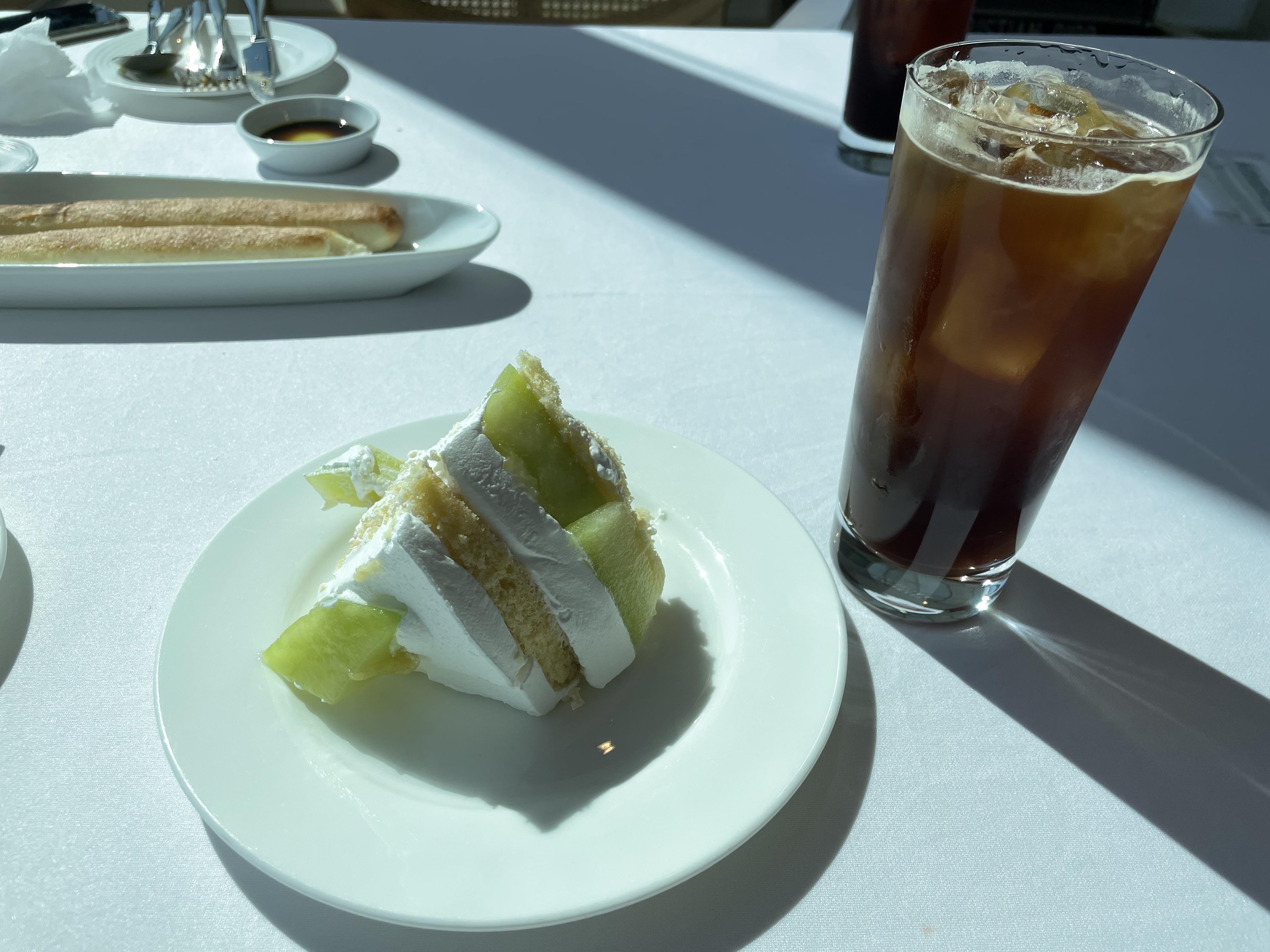 그리고 약간 크림브륄레 처럼 보이는게 있는데 이게 안에 메론이 들어간 과일그라탕인데 존맛이었어요...