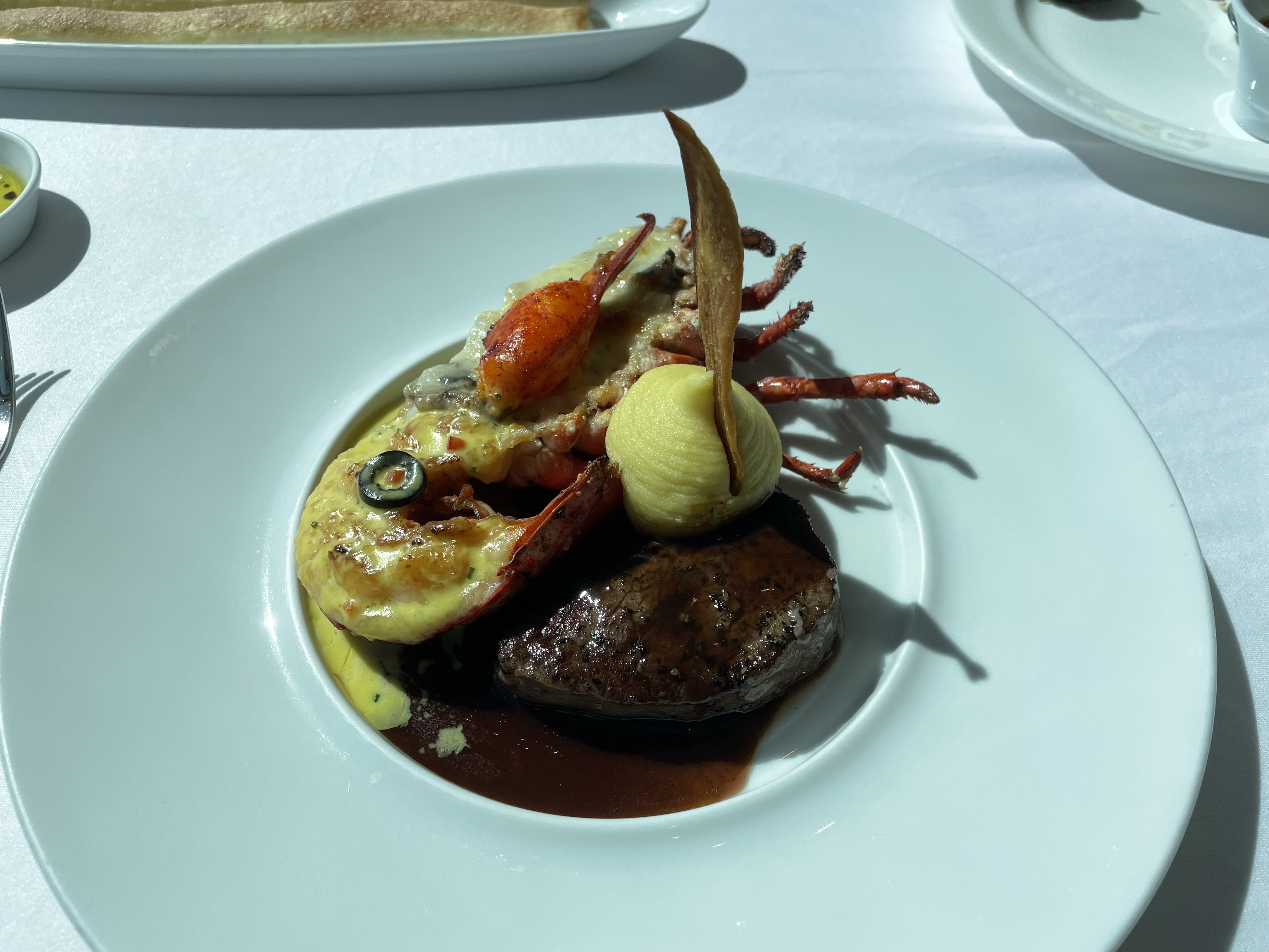 저는 참숯에 구운 소고기 안심스테이크와 그뤼에르 치즈를 곁들인 바닷가재 구이!