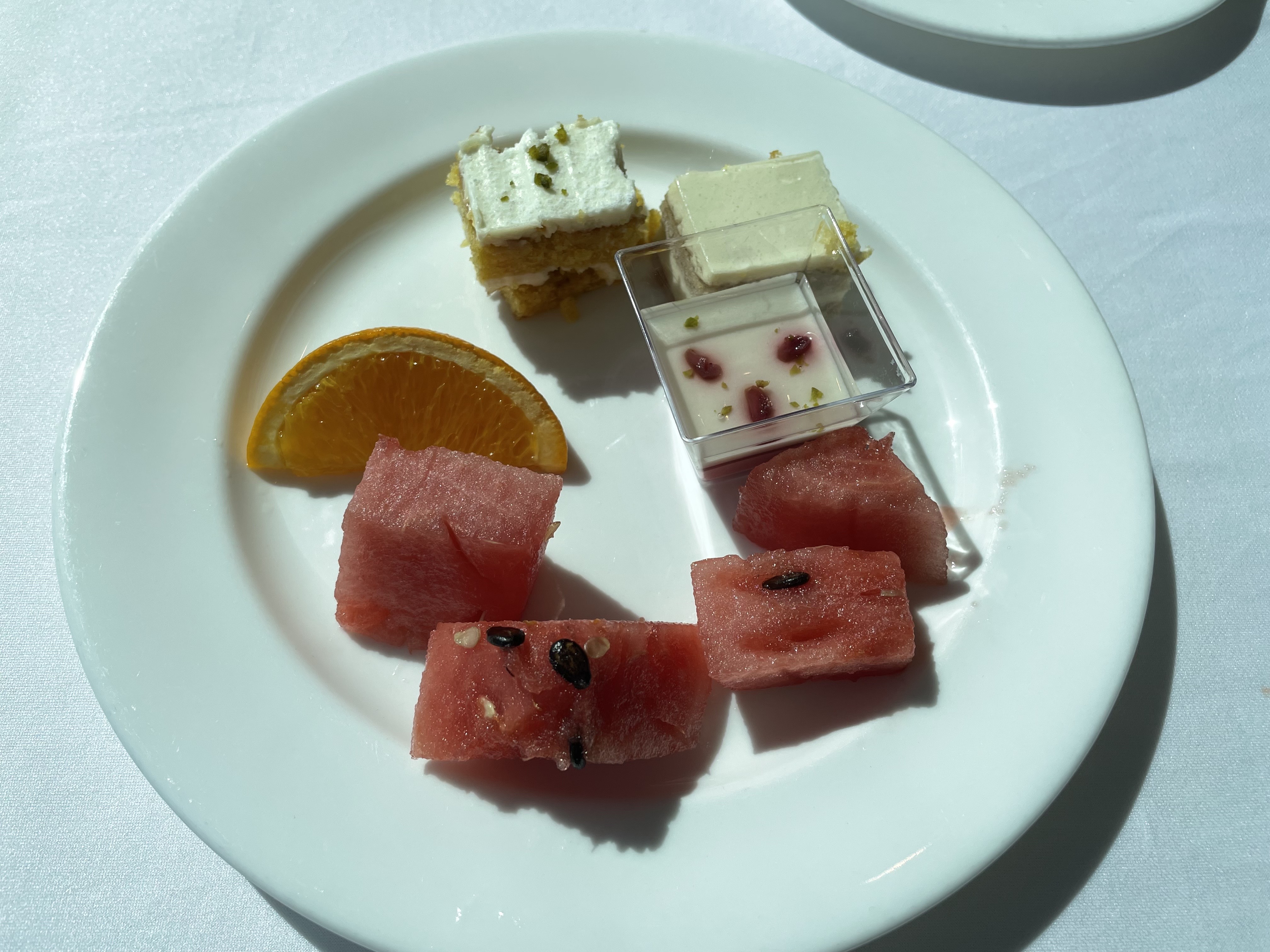 수박이랑 오렌지랑 각종 디저트 가져왔습니다.
