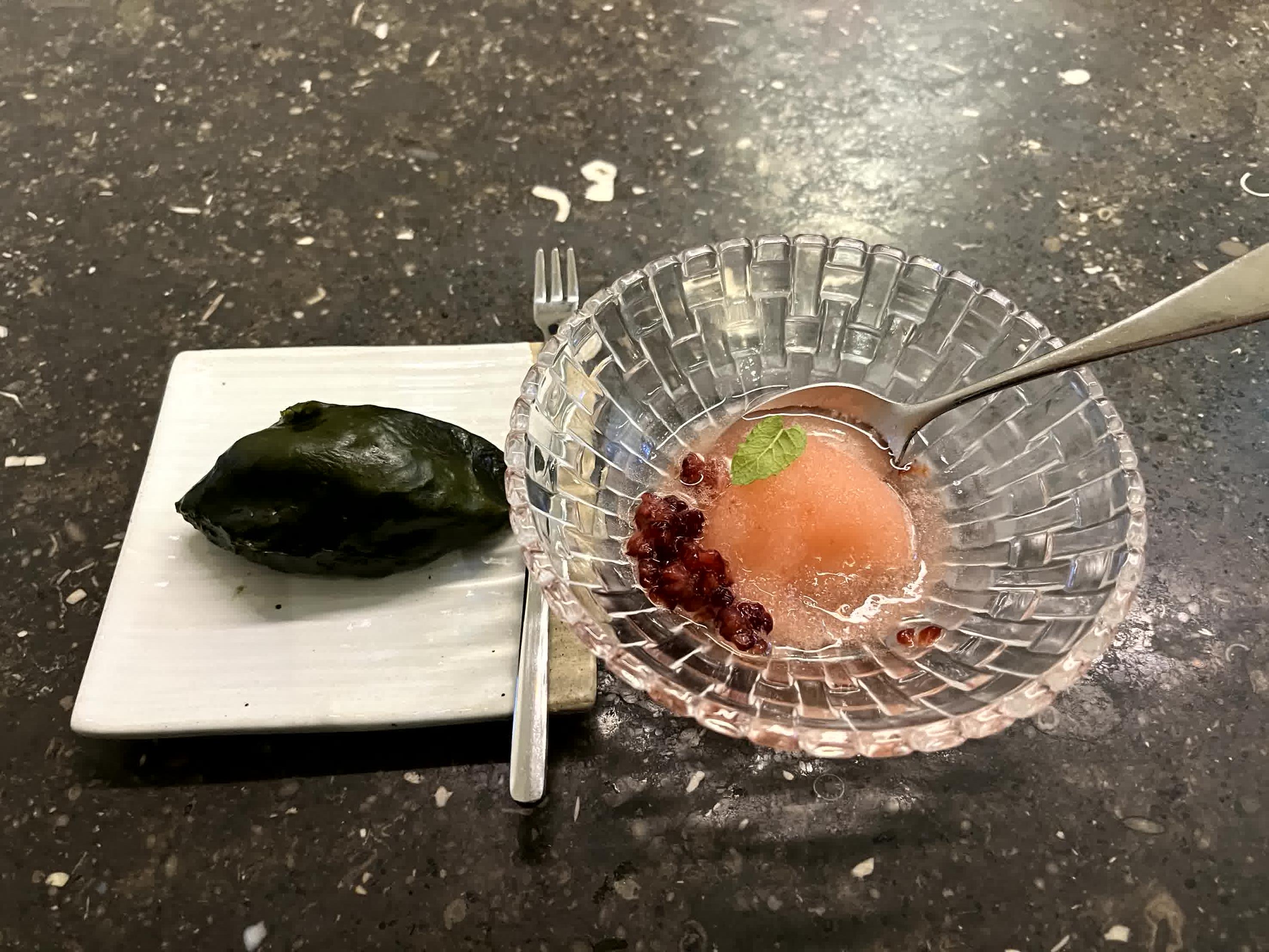 - 오늘의 디저트 (샤베트와 추석이라 송편이 나왔습니다)