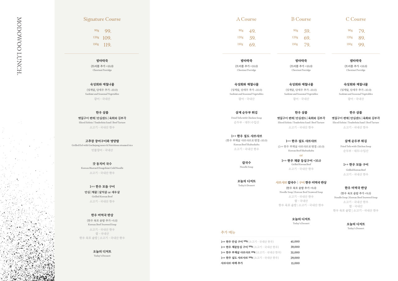 모도우는 기본적으로 한우만 시켜도 되지만, 대부분 코스도 많이 드시는거 같습니다.