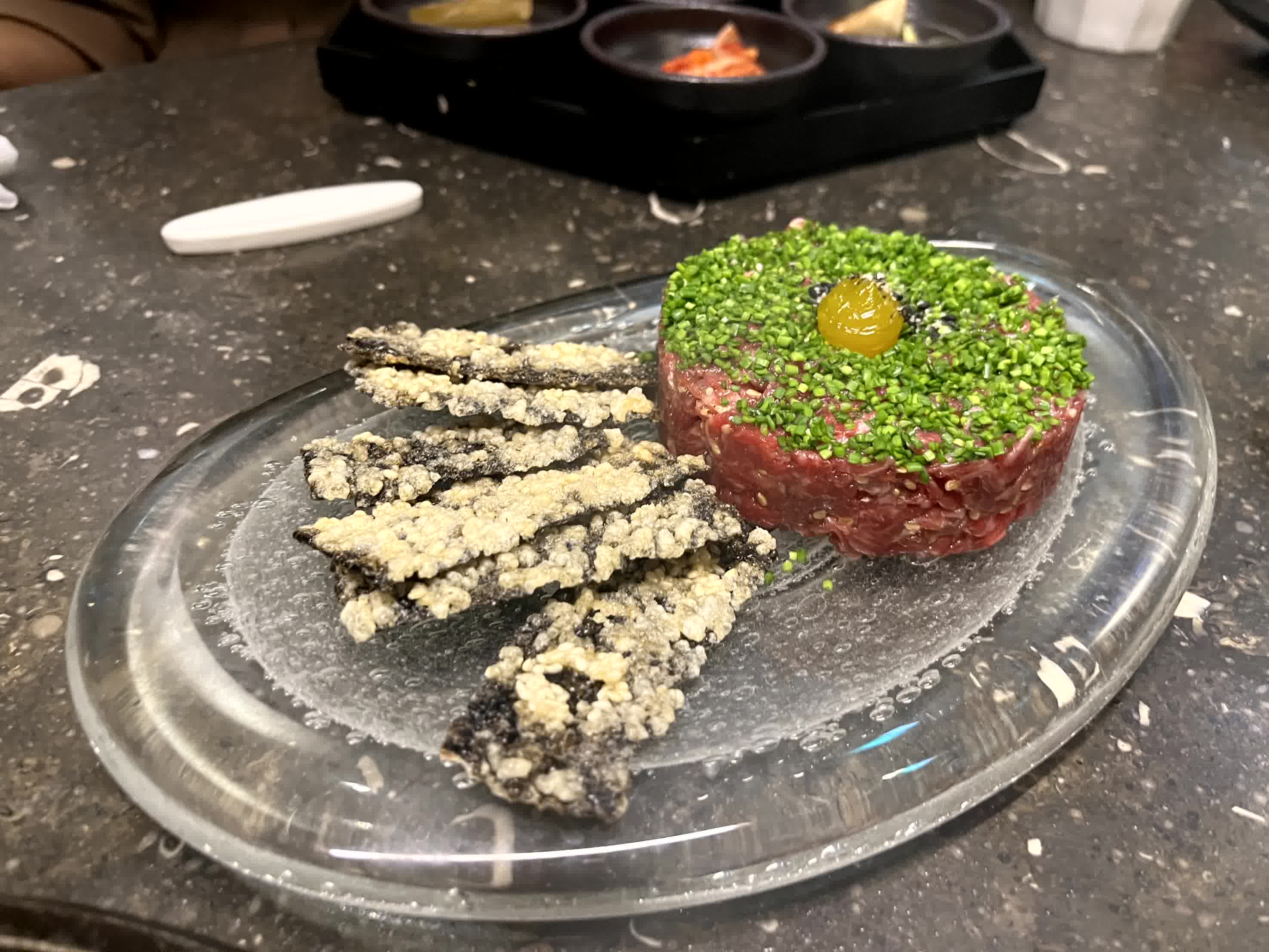 그리고 여기 육회는 간이 센편이 아니라, 김부각 위에 올려먹어야 더 맛있게 넘어갑니다.