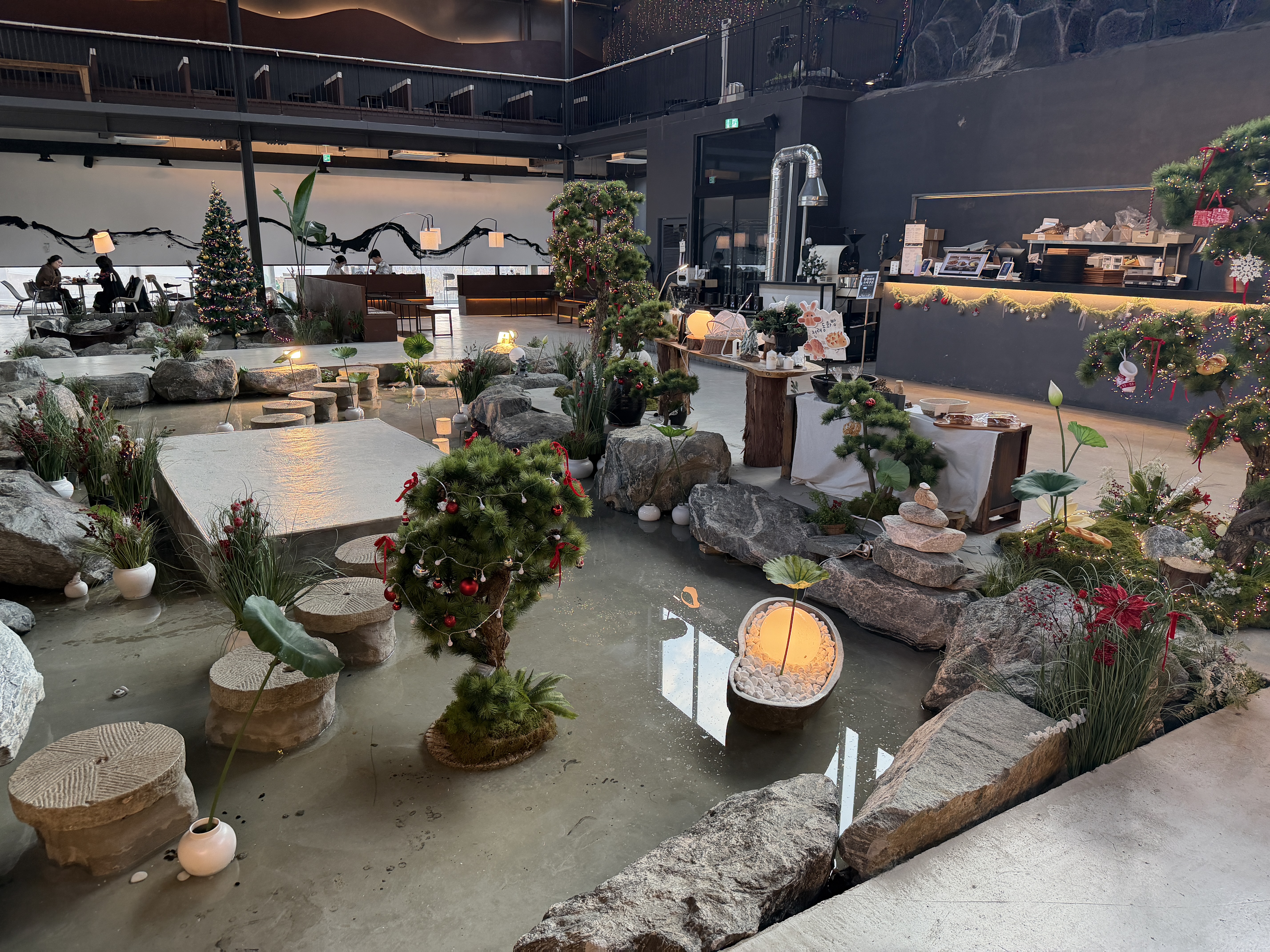 공간자체는 정말 무릉도원을 연상시키는 인테리어로 눈에 띄긴 했어요. 벌써부터 트리까지 해논걸 보면