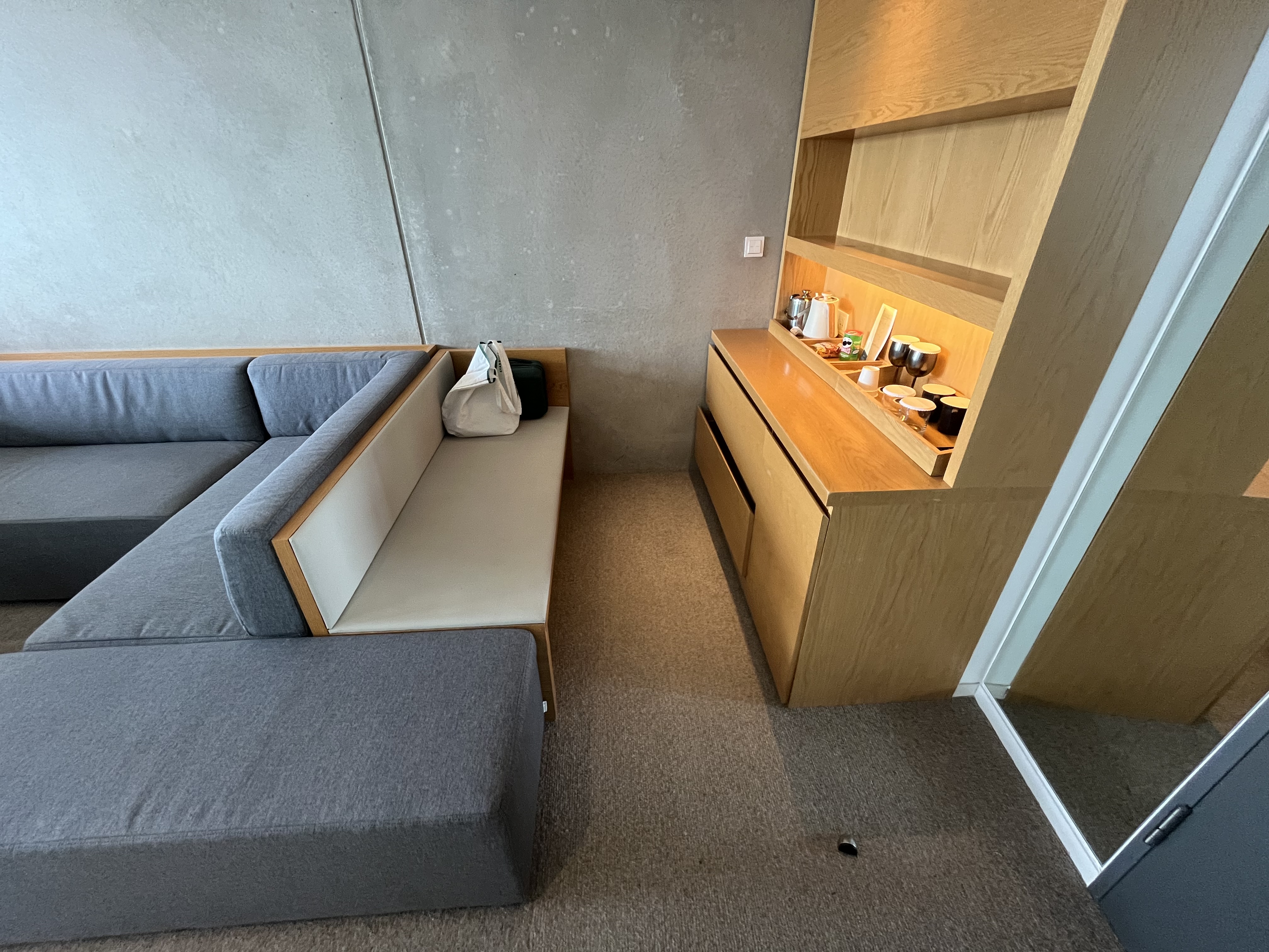 다만 안다즈 보다는 조금 작은 느낌인데, 침대와 쇼파를 완전 분리해서 잘때는 잠만 잘 수 있게 한게 오히려 좋았습니다.
