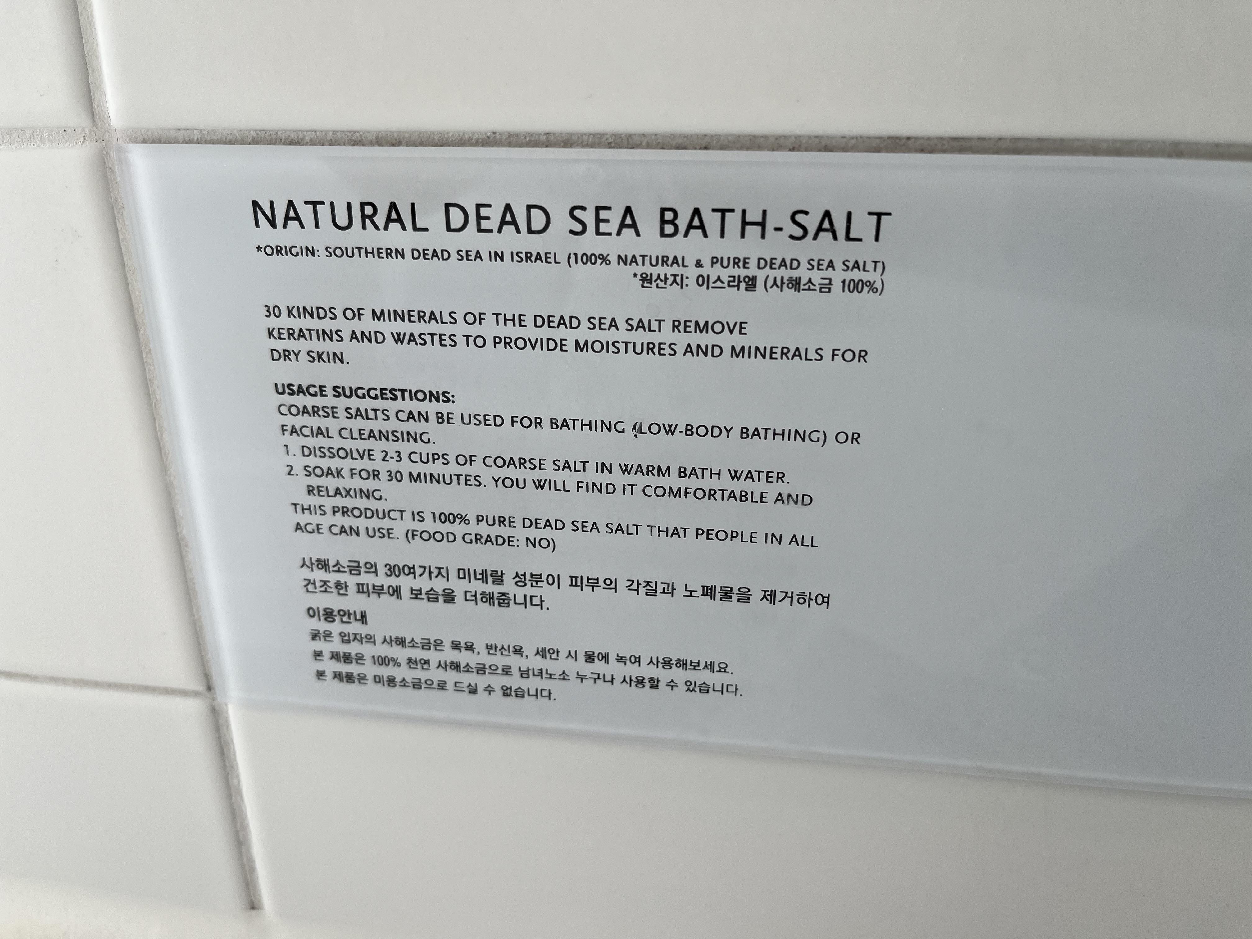 저희는 러쉬 50% 세일 페스타 때 구매한 버블바랑 입욕제를 가져갔지만, 그거 외에도 사해소금이 있어서 저녁에 반신욕하기 너무 좋았어요.