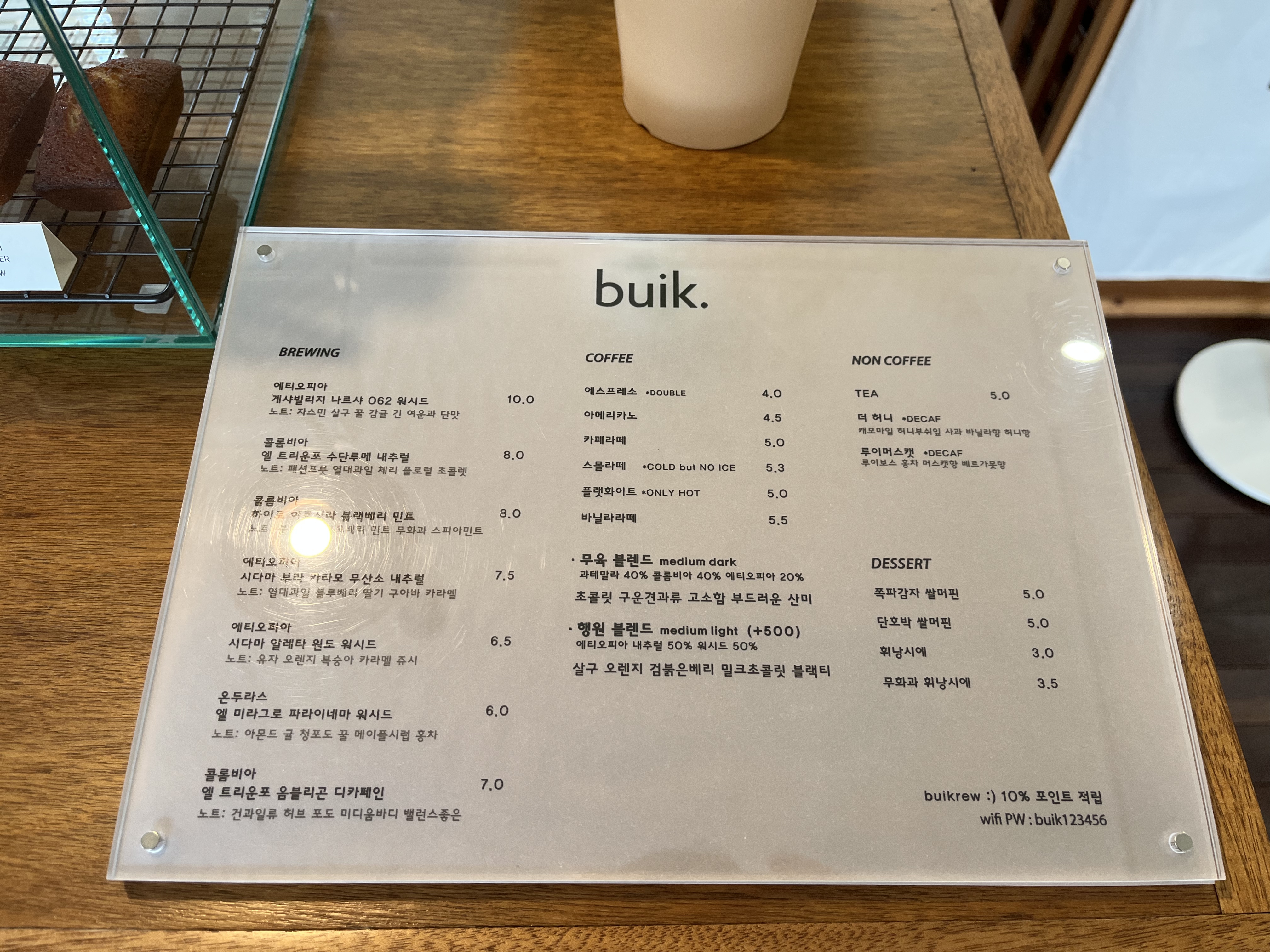3. 제주도 핸드드립 카페, 부이크 브루어스 메뉴