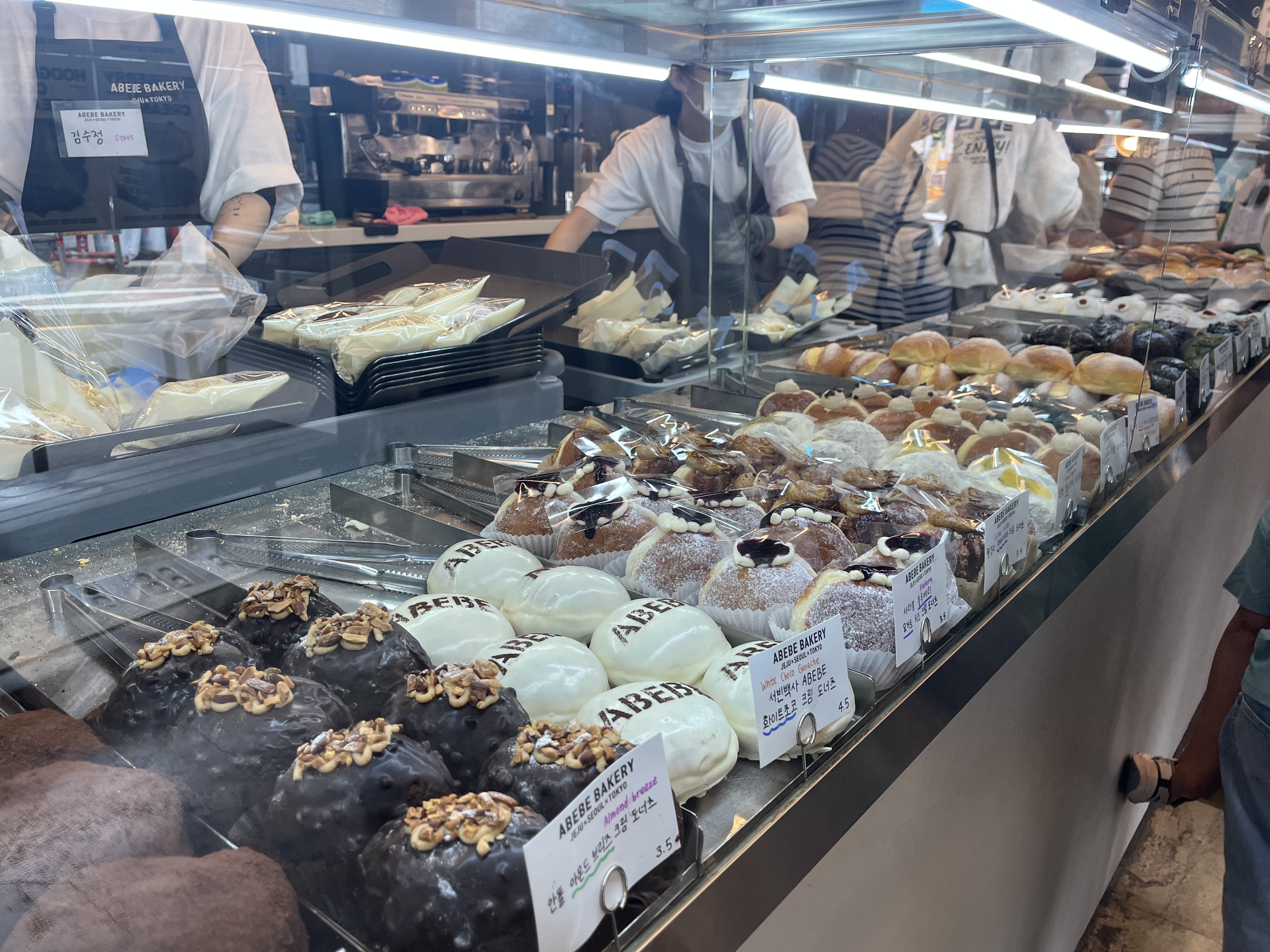 들어가시면 쇼케이스안에 다양한 도너츠와 크림빵이 있고요.