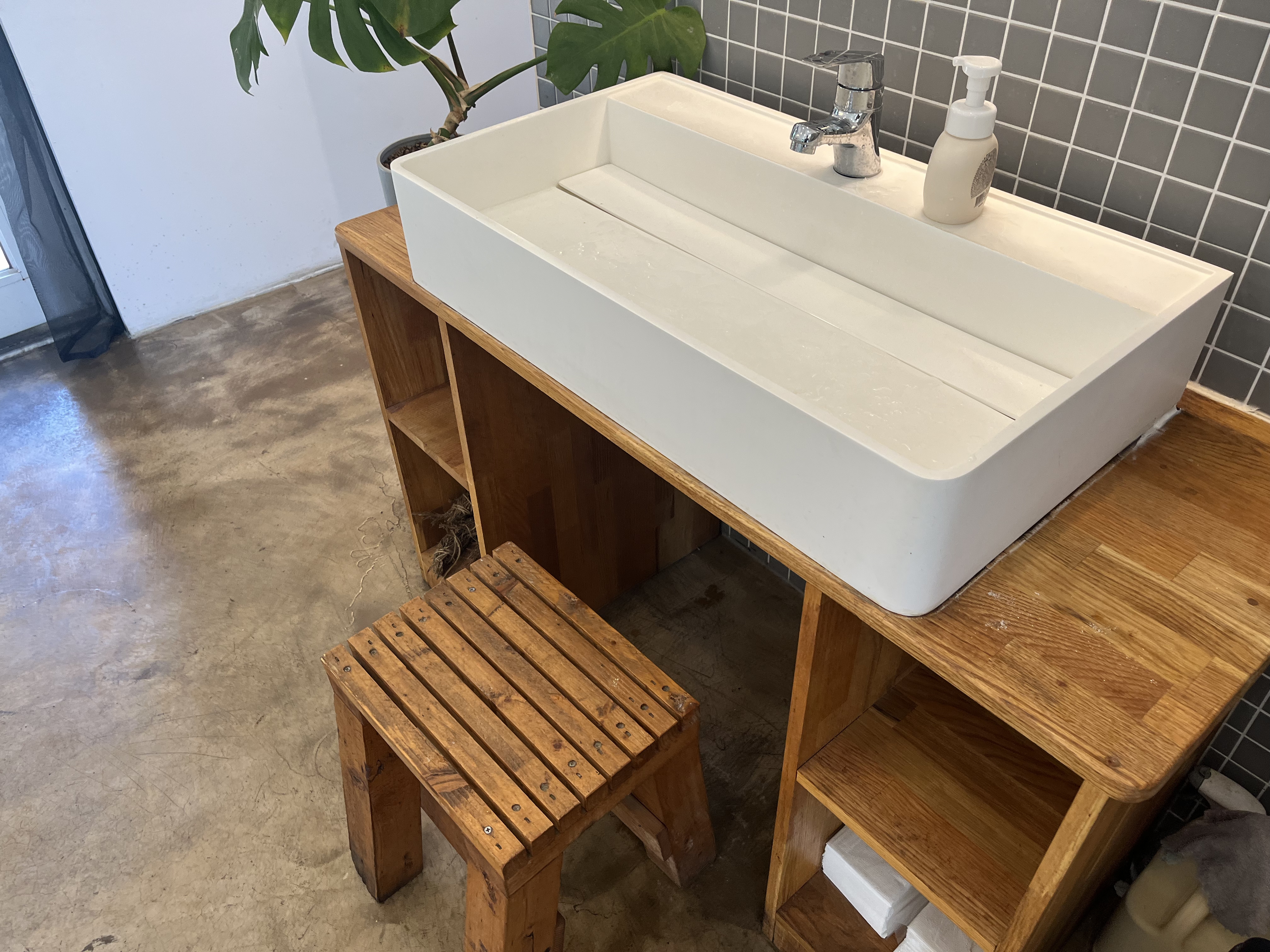 남녀 구분된 화장실 깔끔하고 아이들도 손 씻기 편하게 의자까지 놓은 세심함을 보고는 마음을 뺏겼구요.