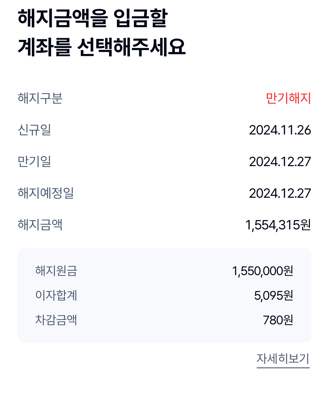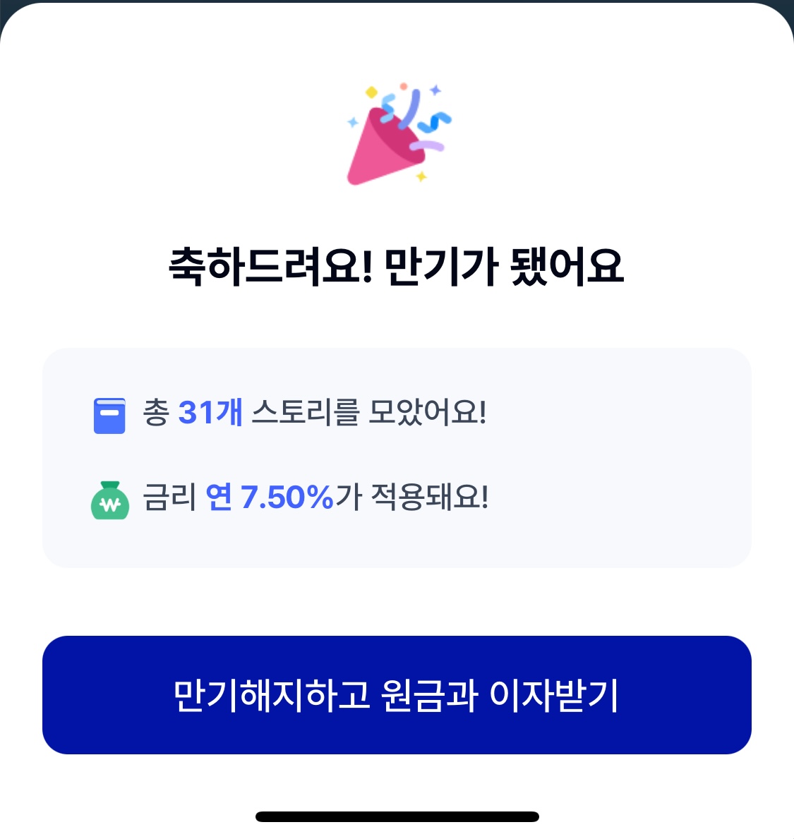 만기가 되면 이렇게 알려주곤 합니다. 하루라도 놓쳤으면 은근 아쉬웠을 텐데, 다행히 하루도 놓치지 않았네요.