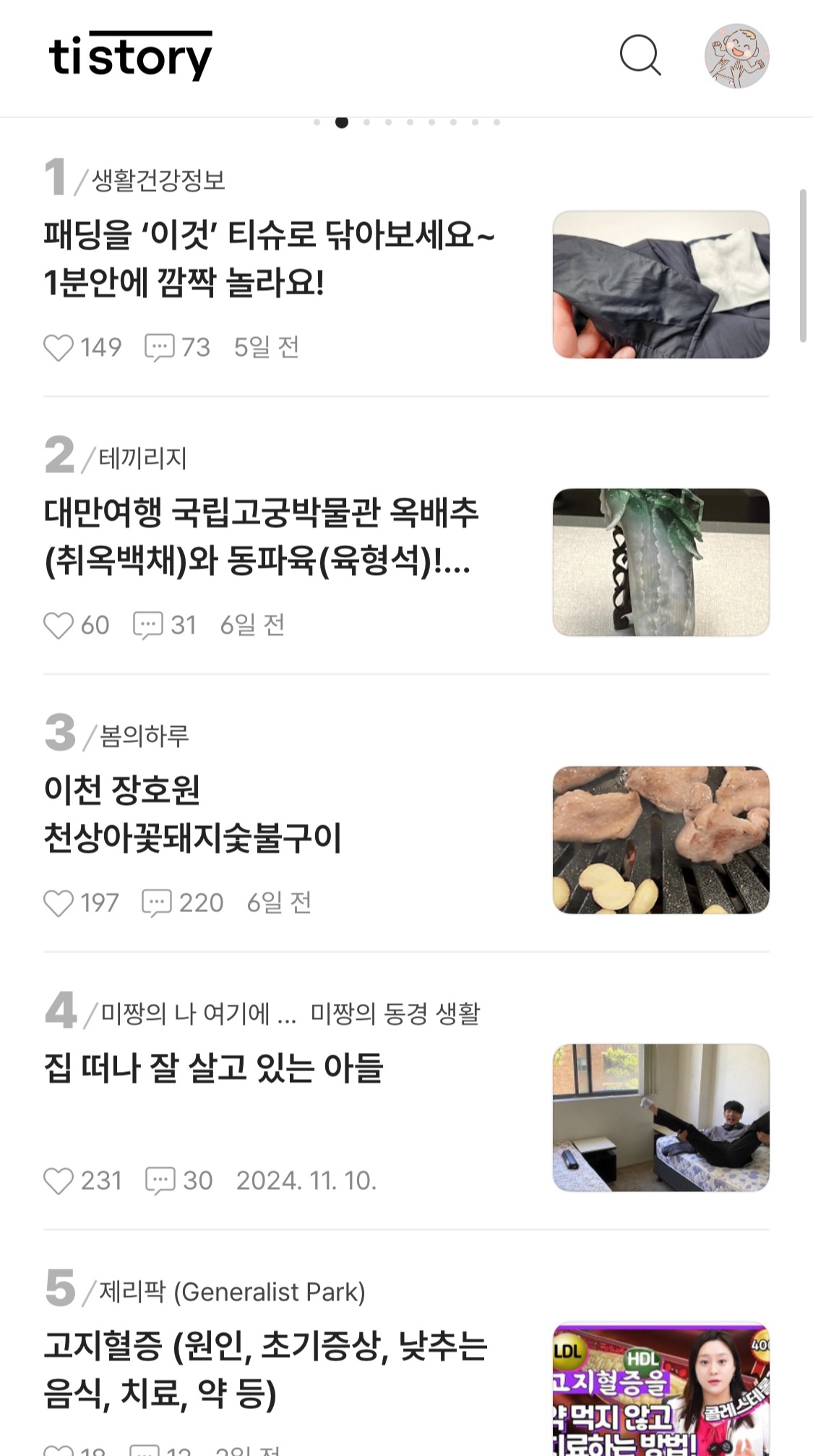 이 과정에서 제가 쓴 글이 티스토리 인기글에도 실렸는데요. 갑자기 조회수가 3천이 넘게 터져서 어떤 이윤지 몰랐는데, 티스토리 인기글에 올랐더라구요. 대만 국립고궁박물관에서 봤던 옥배추(취옥백채)와 동파육(육형석)에 대한 리뷰였습니다. 생각보다 둘 다 보는 경우가 흔하지 않더라구요. 저희는 하나투어 가이드가 일정을 잘 조율해준 덕분에 둘 다 볼 수 있었습니다.