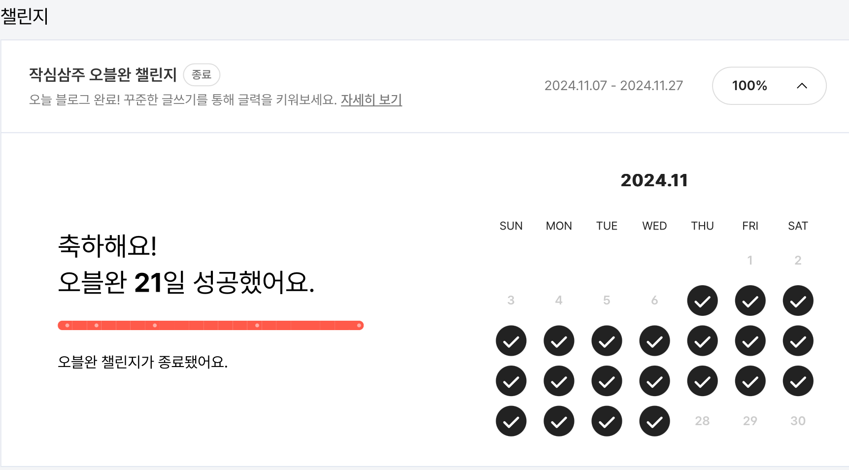 21일 동안 1일 1포스팅을 하면 되는 챌린지였는데요.