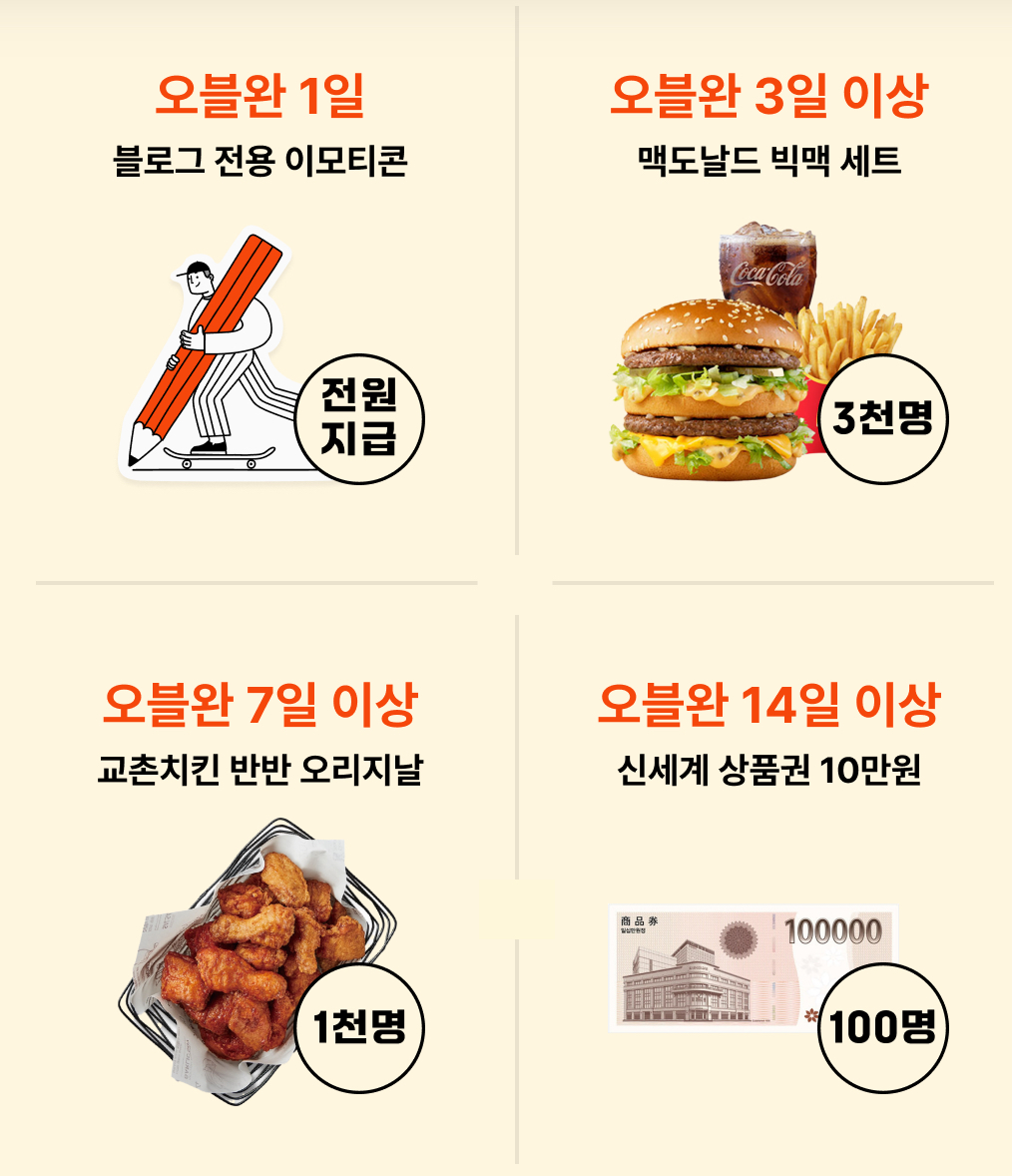 1일 완료 시, 블로그 전용 이모티콘을 전원 지급!