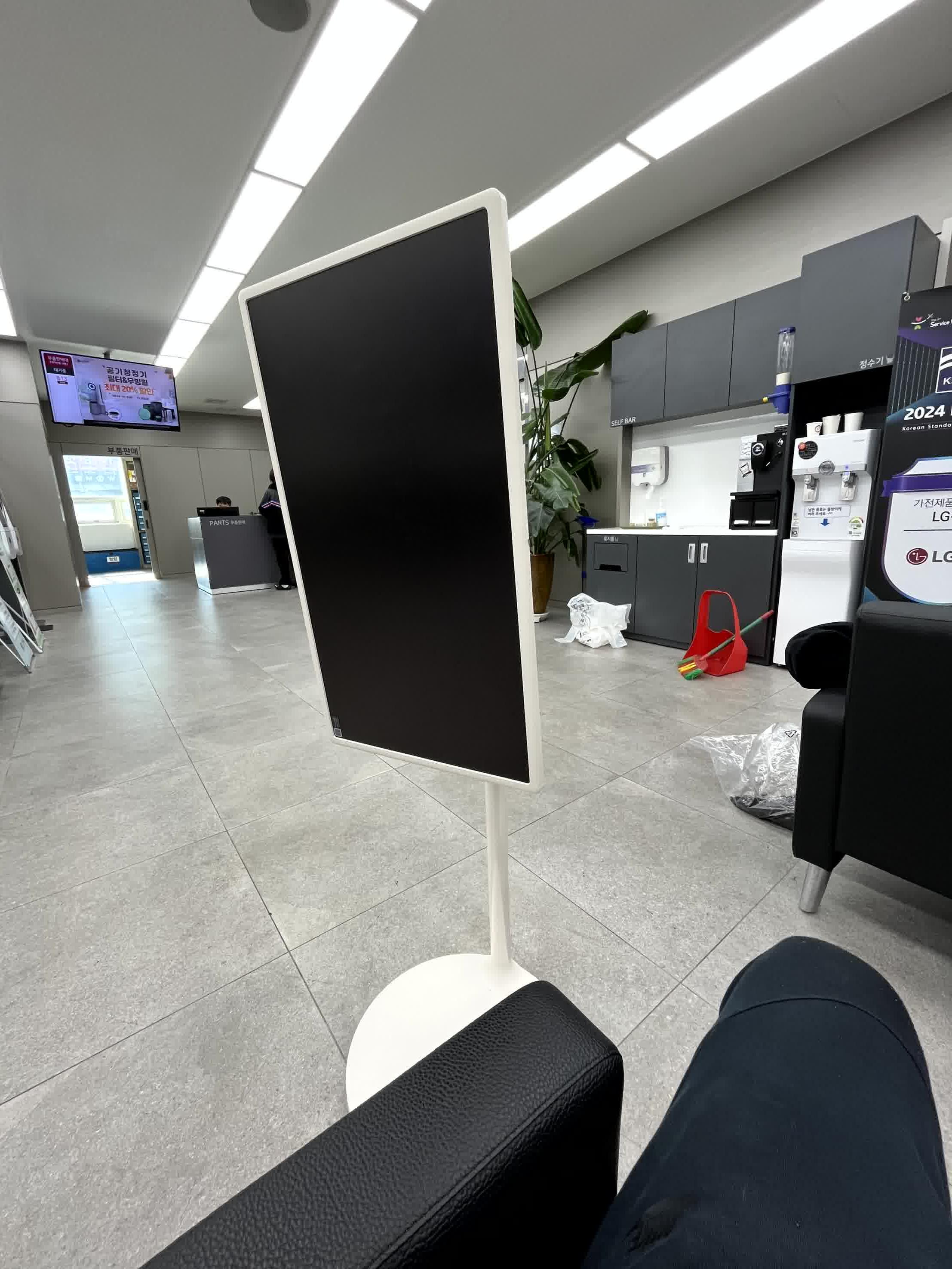 어느날 와이프가 스탠바이미 스탠드 부분이 이상하다며 보여줬는데, TV와 스탠드가 연결되는 힌지 부분의 연결이 끊겼는지 힘이 없는겁니다.